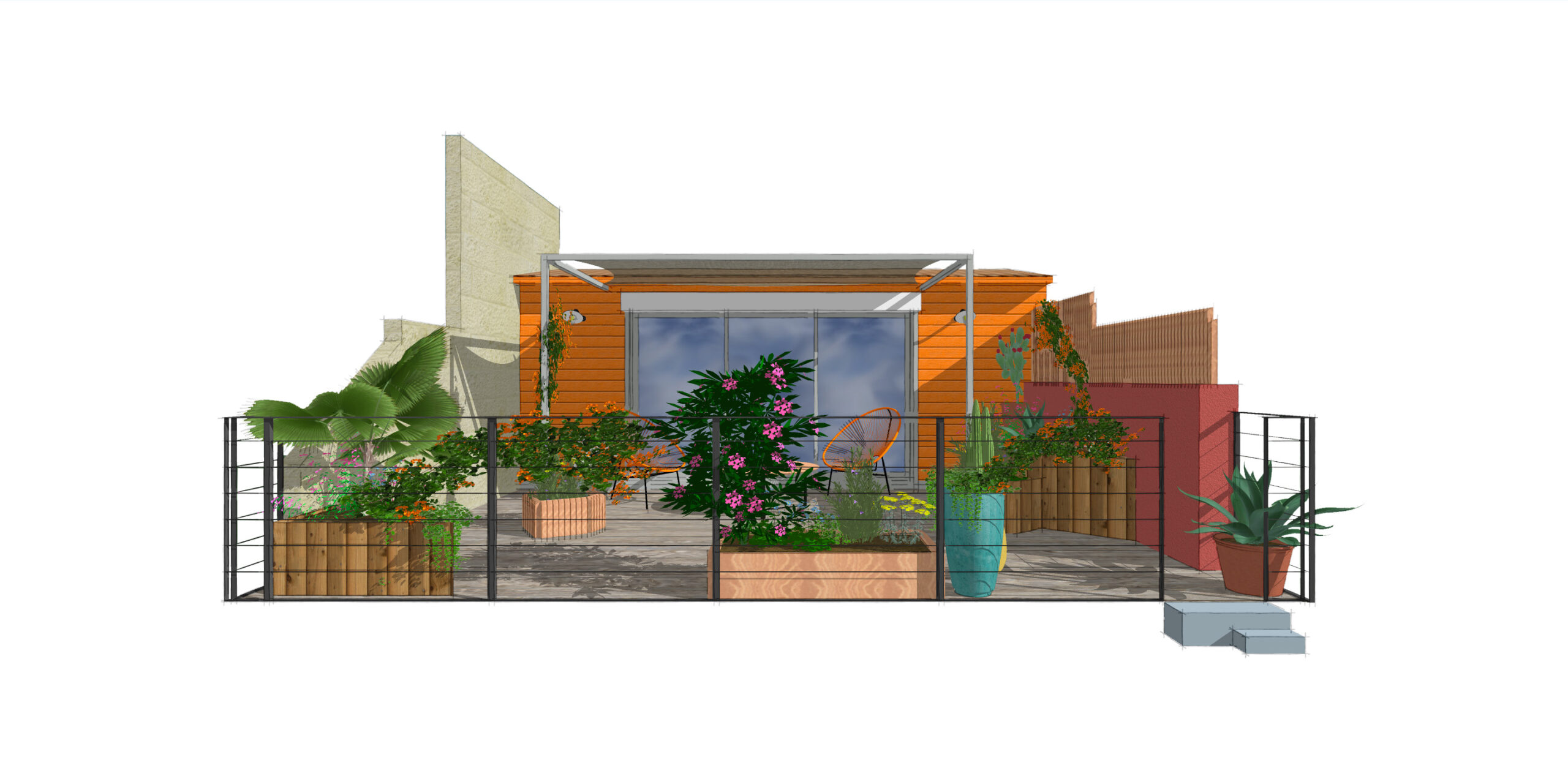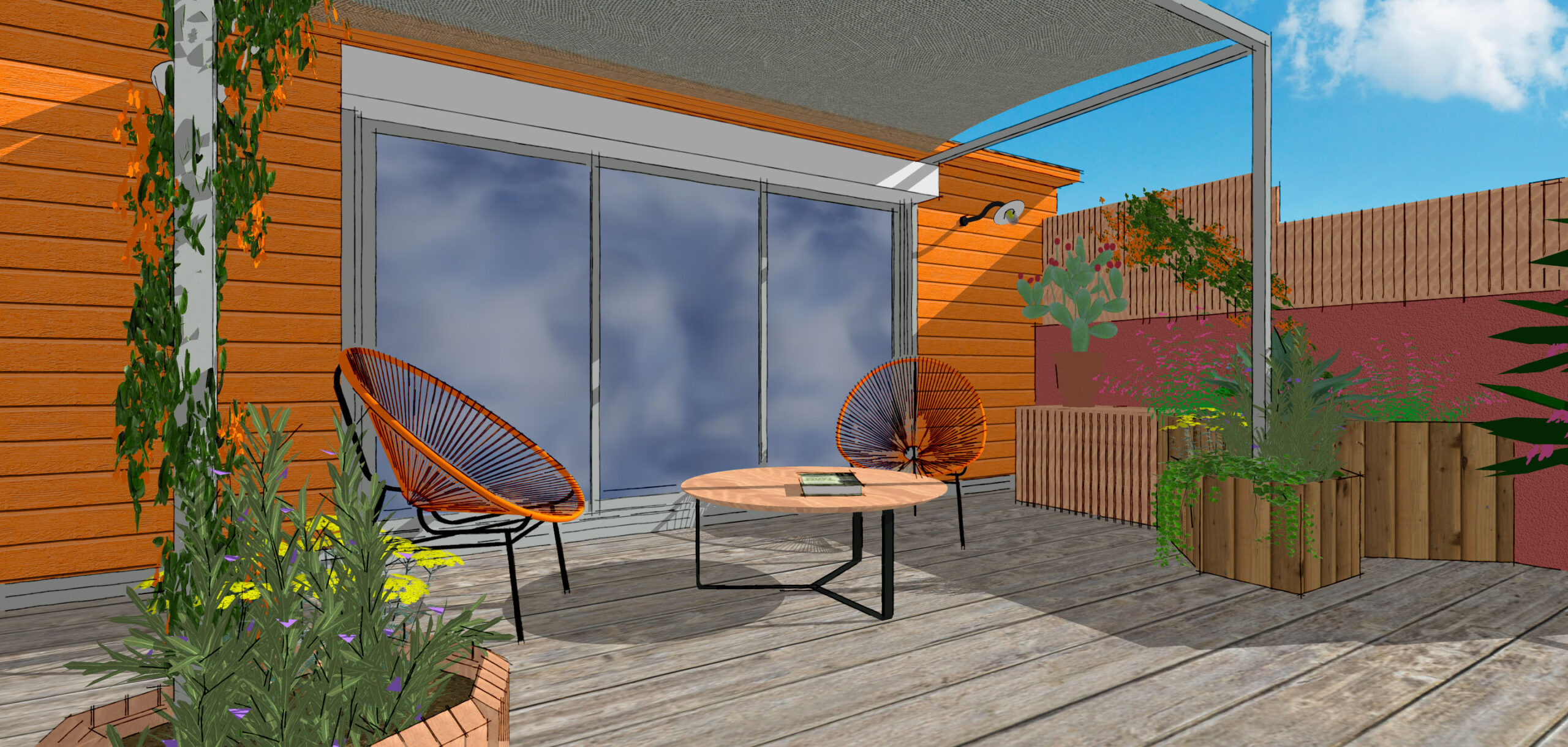 Donner de la singularité à une terrasse utilisant des principes tels que la couleur et les trames.